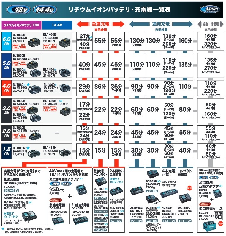 マキタ18Vシリーズ全般に対応! BL1830 / BL1840 / BL1850 / BL1860B 互換可能!