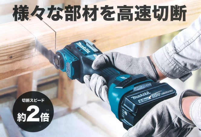 マキタのTM52Dは、高速切断と圧倒的な低振動を実現する充電式マルチツールです。切断スピードは約2倍で、重負荷作業にも対応します。STARLOCK MAX対応で、振動角度はわずか3.6°という低振動設計です。