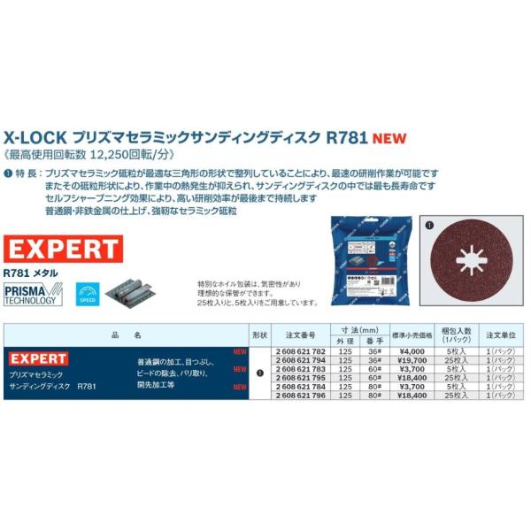 ボッシュ(BOSCH) X-LOCK プリズマセラミックサンディングディスク R782 125mm 番手:36# 5枚入り 2608621808